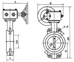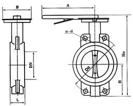 六、D671F氣動對夾式蝶閥外形圖及安裝尺寸: