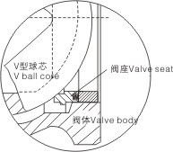 7、超強的剪切能力:V型球閥采有金屬硬密封結構,V型球閥芯及金屬閥座在回轉過程中,V型缺口與閥座產生一個強大的剪切力能切斷纖維等雜質,并具有自潔功能,避免閥門卡死現象發(fā)生。