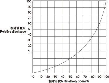 氣動球閥的固有流量特性為近似等百分比特性,特性曲線下圖所示。