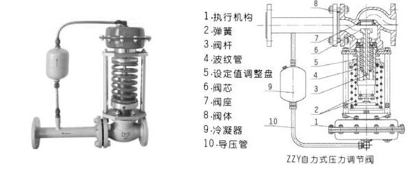 ZZY型自力式壓力調(diào)節(jié)閥無需外加能源,利用被調(diào)介質(zhì)自身能量為動力源,引入執(zhí)行機構(gòu)控制閥芯位置,改變兩端的壓差和流量,使閥前(或閥后)壓力穩(wěn)定。具有動作靈敏,密封性好,壓力設(shè)定點波動小等優(yōu)點,廣泛應(yīng)用于氣體、液體及蒸汽介質(zhì)減壓穩(wěn)壓或泄壓穩(wěn)壓的自動控制。
